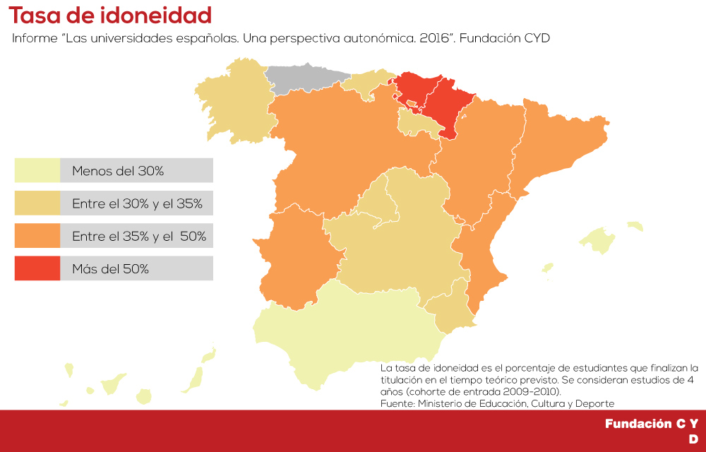Nuevamente, el informe constata la gran variabilidad existente entre las diferentes comunidades autónomas españolas en los diversos indicadores mostrados y permite, si así se desea, realizar un análisis detallado de la situación de cada región, comparándola con el resto, así como de las universidades que la componen.